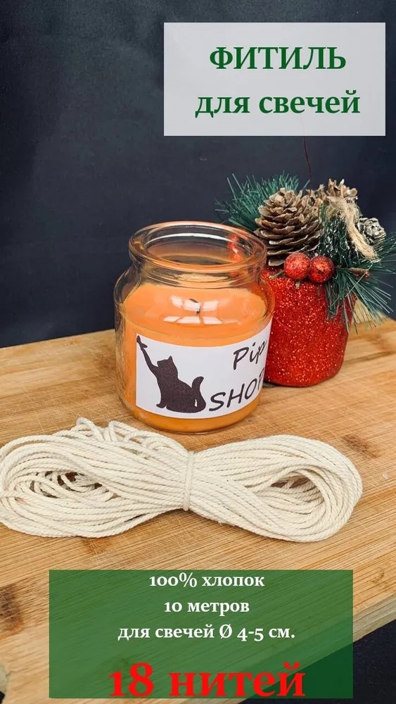 Фитиль (не вощеный) 18 нитей. Идеально подходит для свечей диаметром 4-5 см.