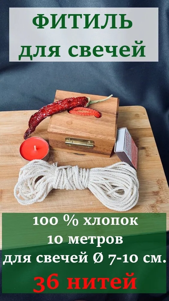 Фитиль (не вощеный) 36 нитей. Идеально подходит для свечей диаметром 7-10 см.